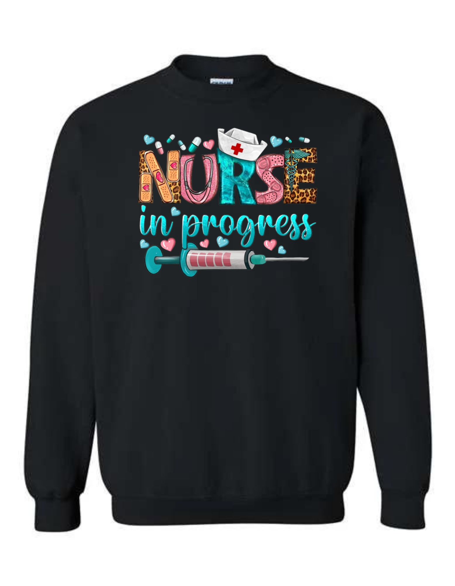 Showcase your nursing journey with the Crystal Comfort Nurse in Progress Sweatshirt. This unisex sweatshirt features a stylish “Nurse in Progress” design with elegant crystal accents. Made from a soft and durable cotton-polyester blend, it offers a comfortable fit for everyone. Perfect for aspiring nurses, wear your dedication proudly. Order yours today!